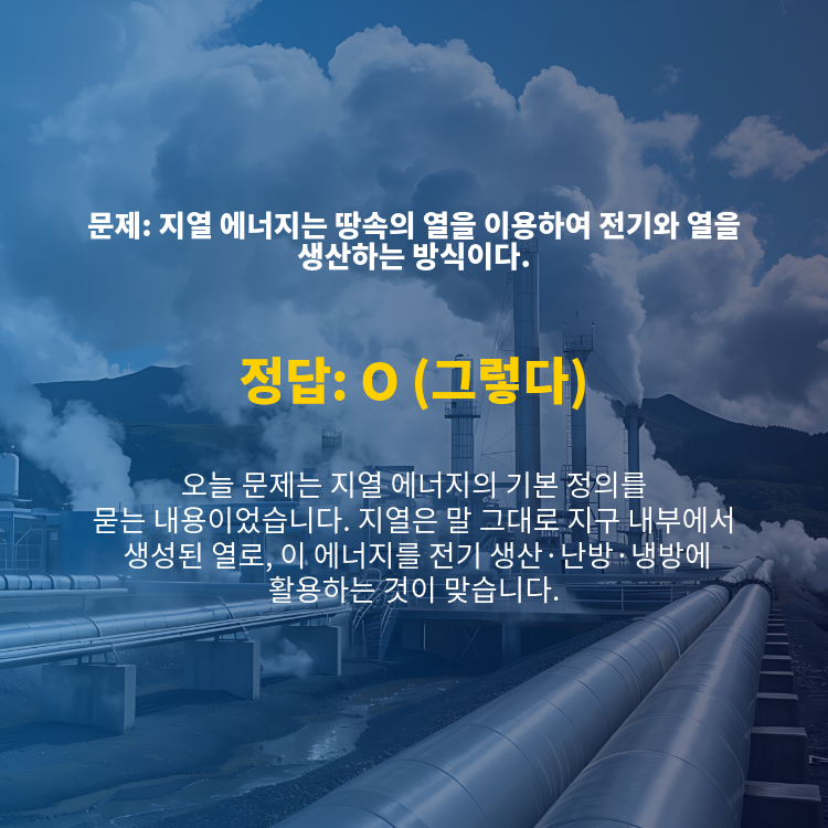 📘 기후동행퀴즈 11월 23일 정답 · 지열 발전·지열 히트펌프의 작동 원리 해설